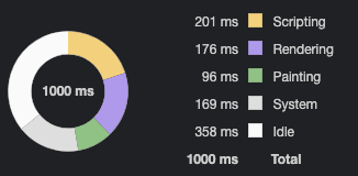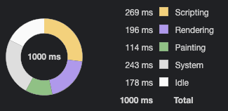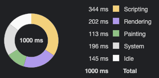 Switching on production mode offers great performance benefits. Even this naive implementation results in 144fps updates. Again, this doesn't help our specific situation of improving the developer experience, but it's good to keep in mind.