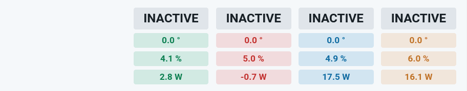const SummaryCard = () => { const sensors: SensorTelemetry[] | null = useHardwareState(state => state.power_sen) if (sensors === null) { return <span>No telemetry available...</span> } return ( <Composition gap={10}> {sensors.map((sensor, index) => ( <Box key={index}> <SensorStats data={sensor}/> </Box> ))} </Composition> )}This approach makes repeated layouts far cleaner. By passing the index to the component layout function, we are able to modify the color property to distinguish each field