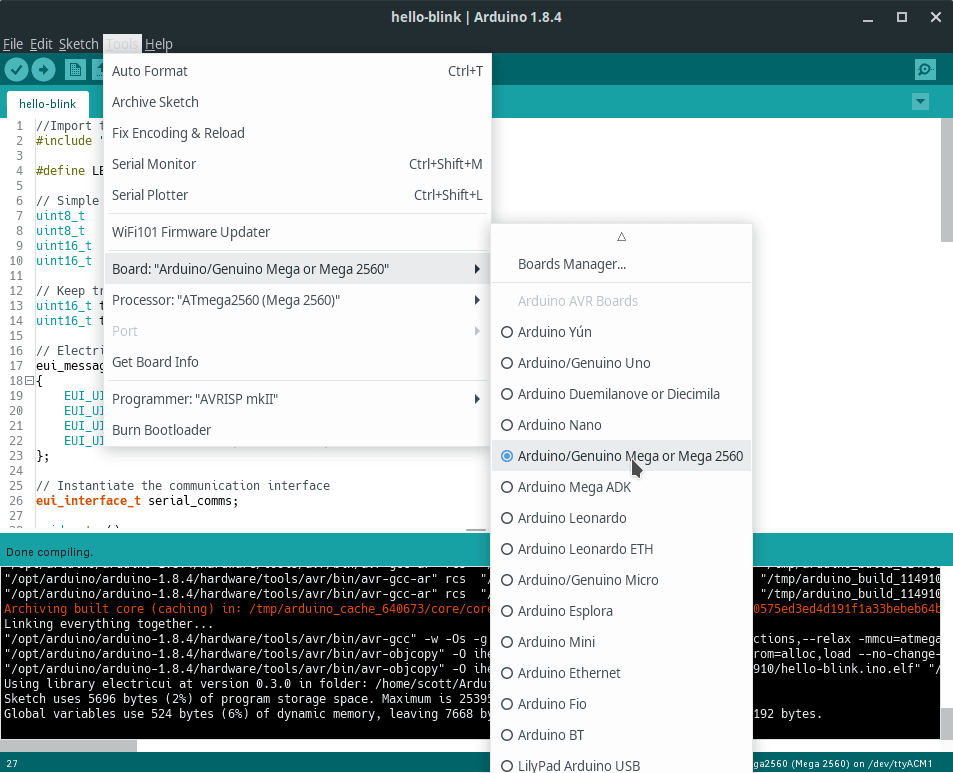 Open up the basic example under File -> Examples -> electricui-embedded -> Basic -> hello-blink.