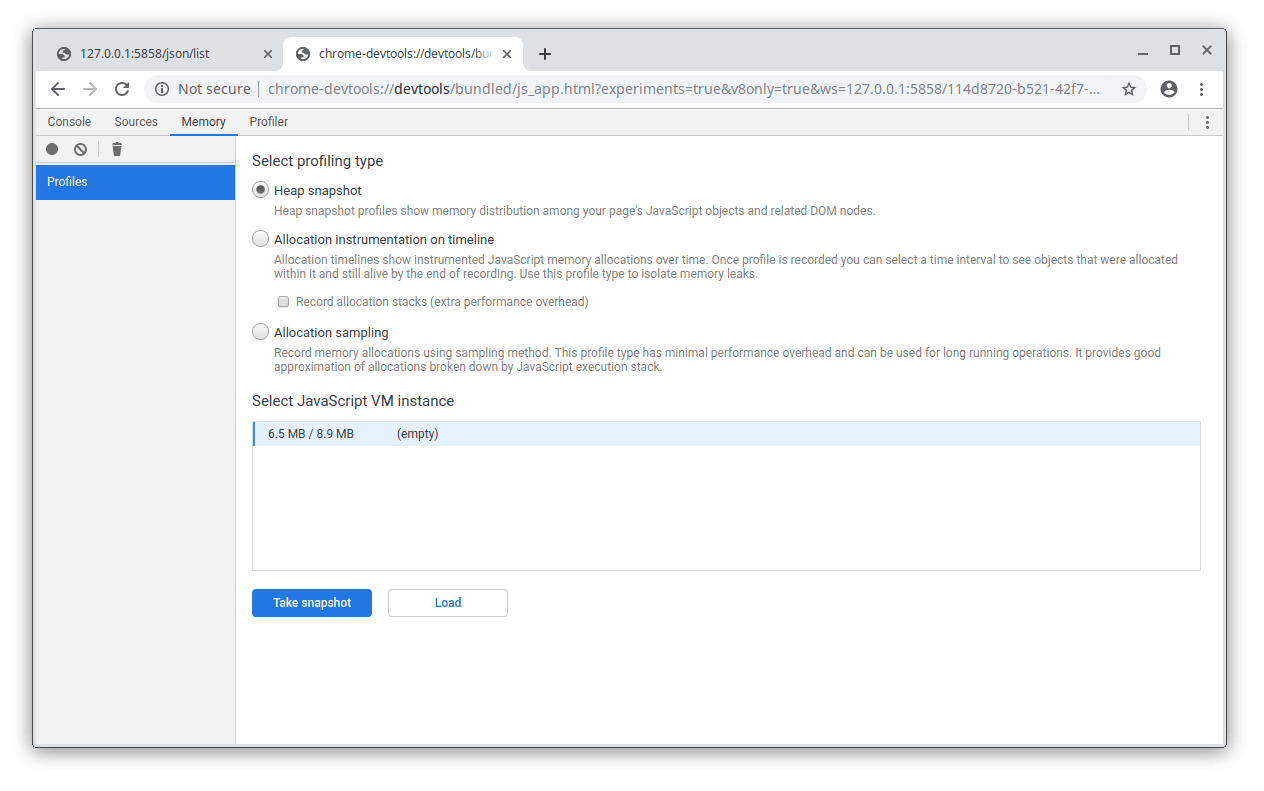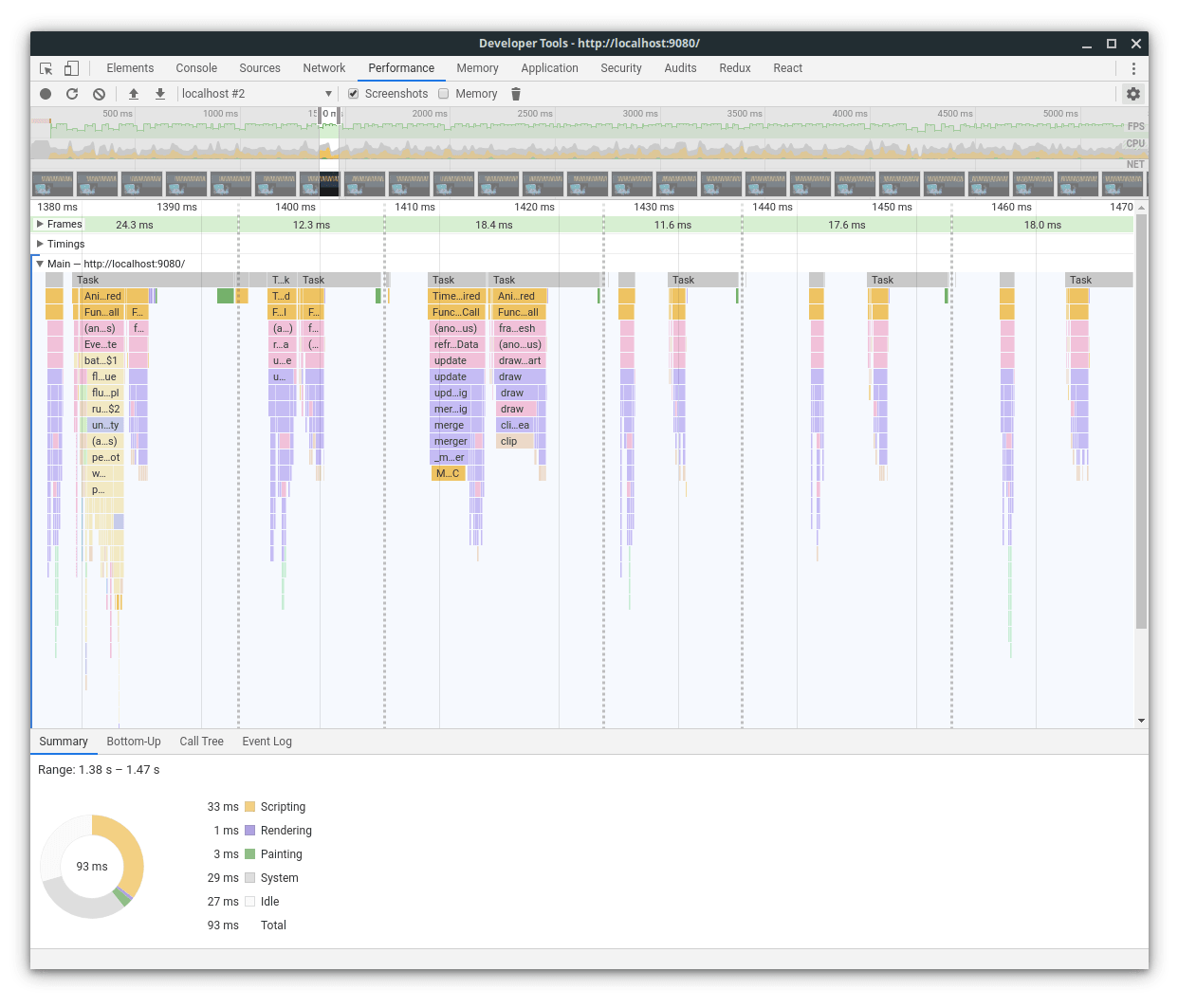 - Press stop, and the recorded section displays as a flamegraph.